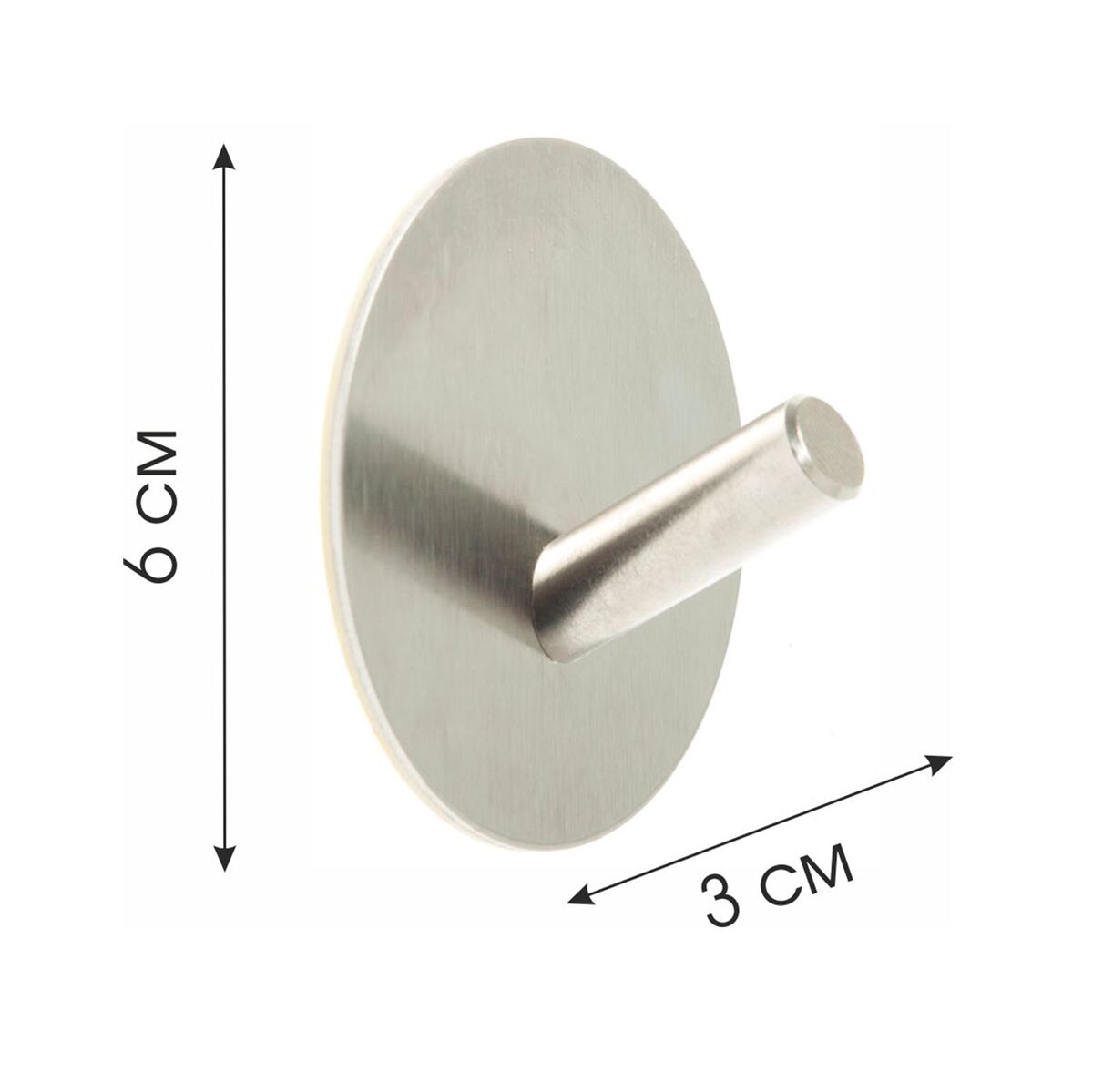 Вес без индивидуальной упаковки: по 40г +/- 2г. Вес с упаковкой: 90г +/- 2г. Размер: диаметр 6см; длина крючка: 3см; крючок диаметром 1см +/- 2мм. Состав: Нержавеющая сталь. Цвет: Хром.