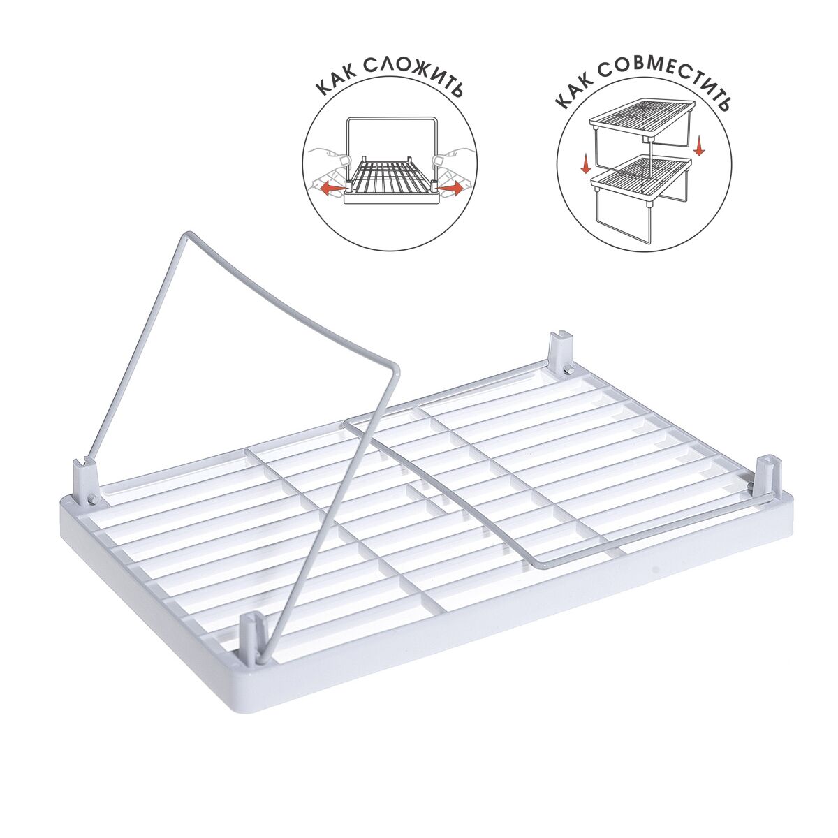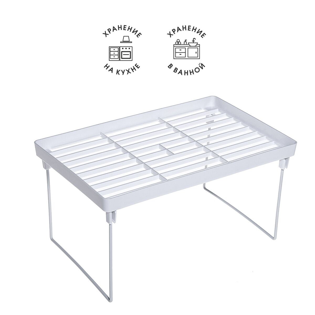 Вес без индивидуальной упаковки: 196г +/- 2г. Вес с упаковкой: 210 +/- 2г. Размер: 31,5*19,5*16 см (в разложенном виде), высота пластиковой части - 2см.. Состав: Пластиковая часть: полипропилен. Металлические ножки: железо. Белая краска на металлических ножках: литье распылением с полипропиленом.. Цвет: Белый.