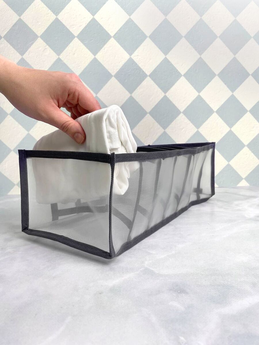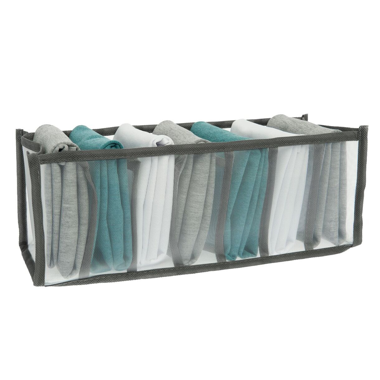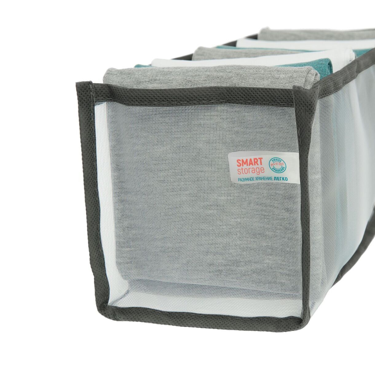 Вес без индивидуальной упаковки: 30+/-3г. Вес с упаковкой: 58+/-3г. Размер: 12*32*12см. Размер товара на полке: 35*15*2см. Состав: полиамид (нейлон), окантовка: полипропилен (спанбонд, плотность 80 г/м²), силикон (вшивной ярлык с логотипом). Цвет: прозрачный + серая окантовка, цвет окантовки близкий к Pantone 445C. Упаковка: картонный цветной хедер с европодвесом, прозрачный пакет