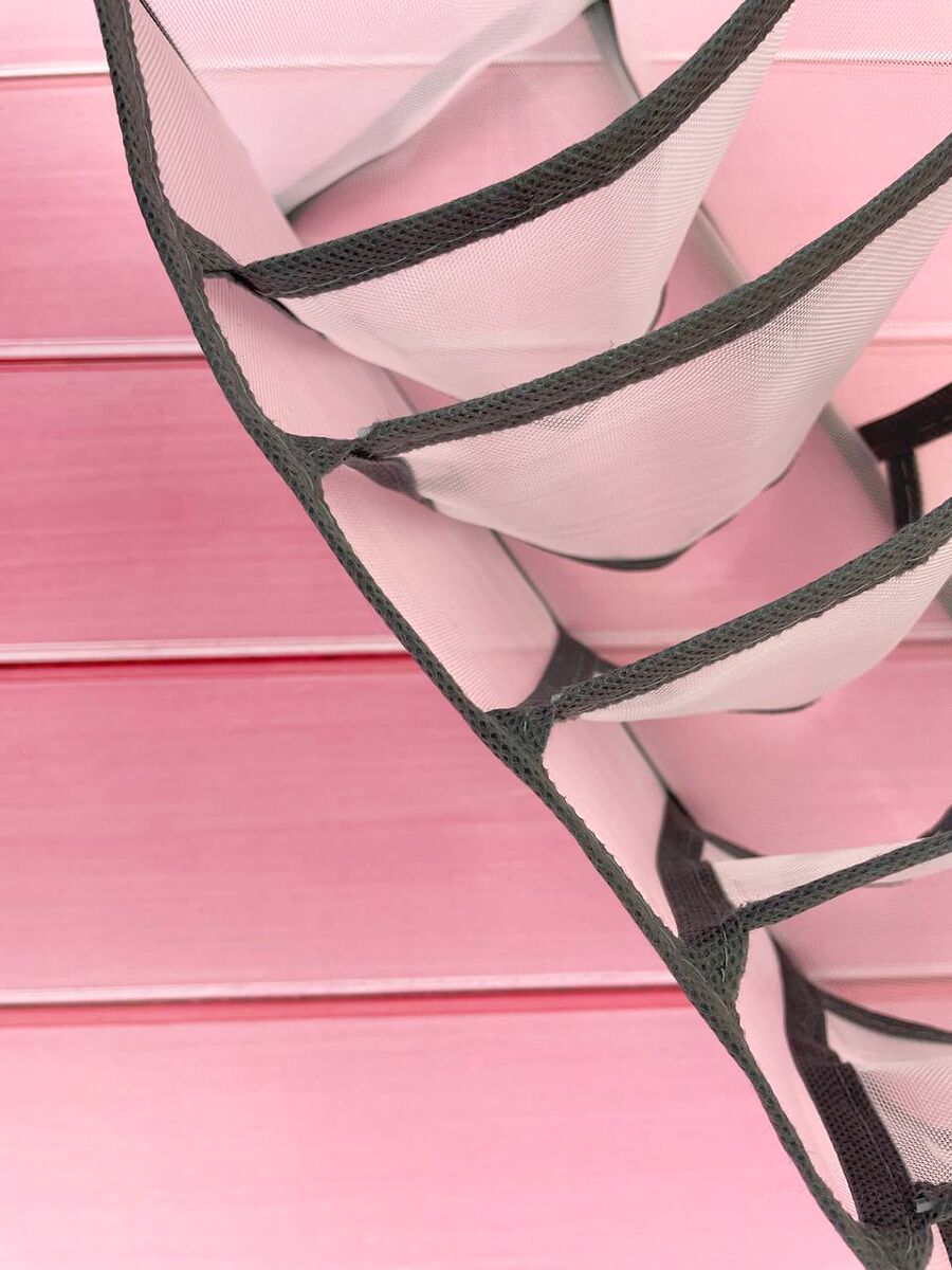 Вес без индивидуальной упаковки: 40+/-3г. Вес с упаковкой: 62+/-3г. Размер: 17*36*12см. Размер товара на полке: 37*15*2см. Состав: полиамид (нейлон), окантовка: полипропилен (спанбонд, плотность 80 г/м²), силикон (вшивной ярлык с логотипом). Цвет: прозрачный + серая окантовка, цвет окантовки близкий к Pantone 445C. Упаковка: картонный цветной хедер с европодвесом, прозрачный пакет