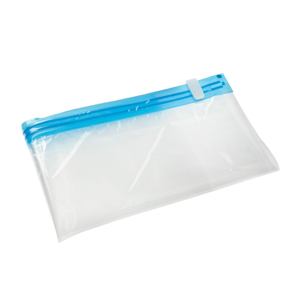 Вес без индивидуальной упаковки: 30 +/- 2 г. Вес с упаковкой: 38 +/- 2 г. Размер: 40*60 см; толщина 50 микрон. Размер товара на полке: 31*17*1,5см. Состав: полиэтилентерефталат (PET); полиэтилен (PE). Цвет: прозрачный пакет, голубой zip-lock, белый зажим. Упаковка: цветной пакет с европодвесом