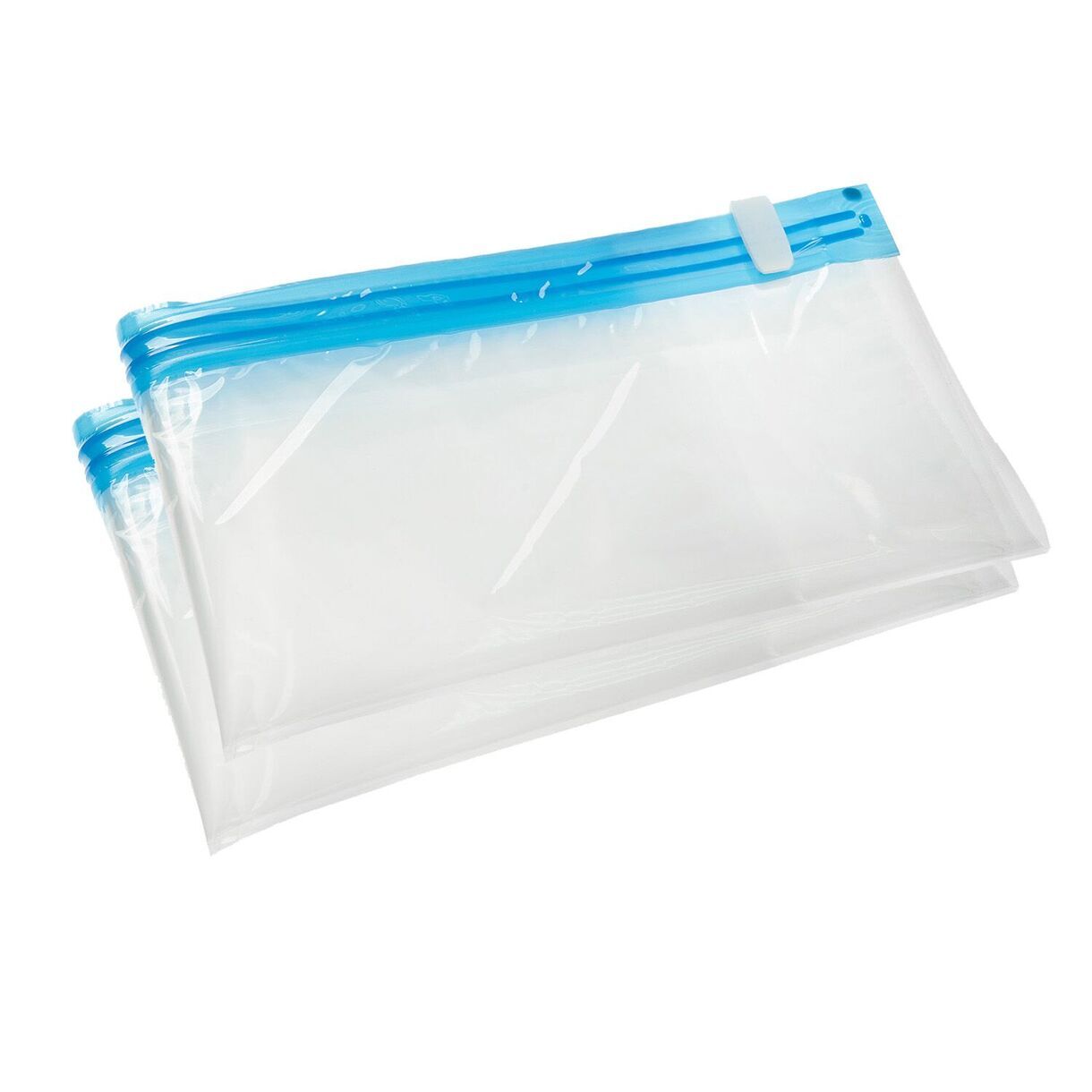 Вес без индивидуальной упаковки: 60 +/- 2 г. Вес с упаковкой: 70 +/- 2 г. Размер: 40*60 см; толщина 50 микрон. Комплектация: 2шт. Размер товара на полке: 31*17*2,5см. Состав: полиэтилентерефталат (PET); полиэтилен (PE). Цвет: прозрачный пакет, голубой zip-lock, белый зажим. Упаковка: цветной пакет с европодвесом