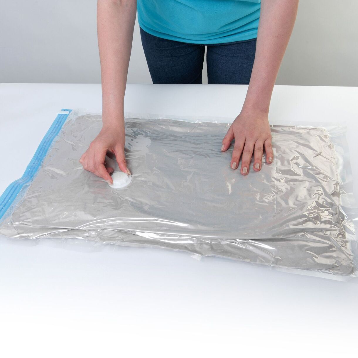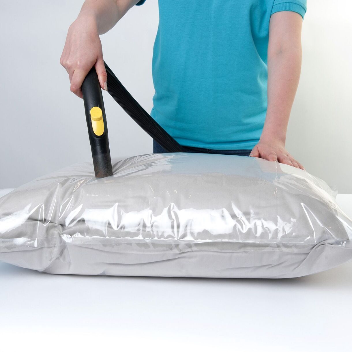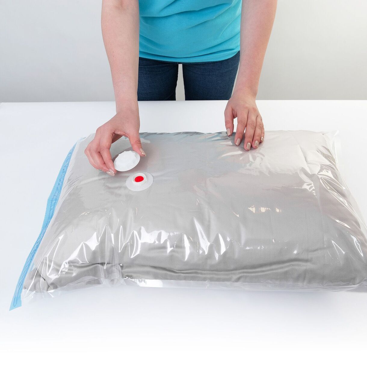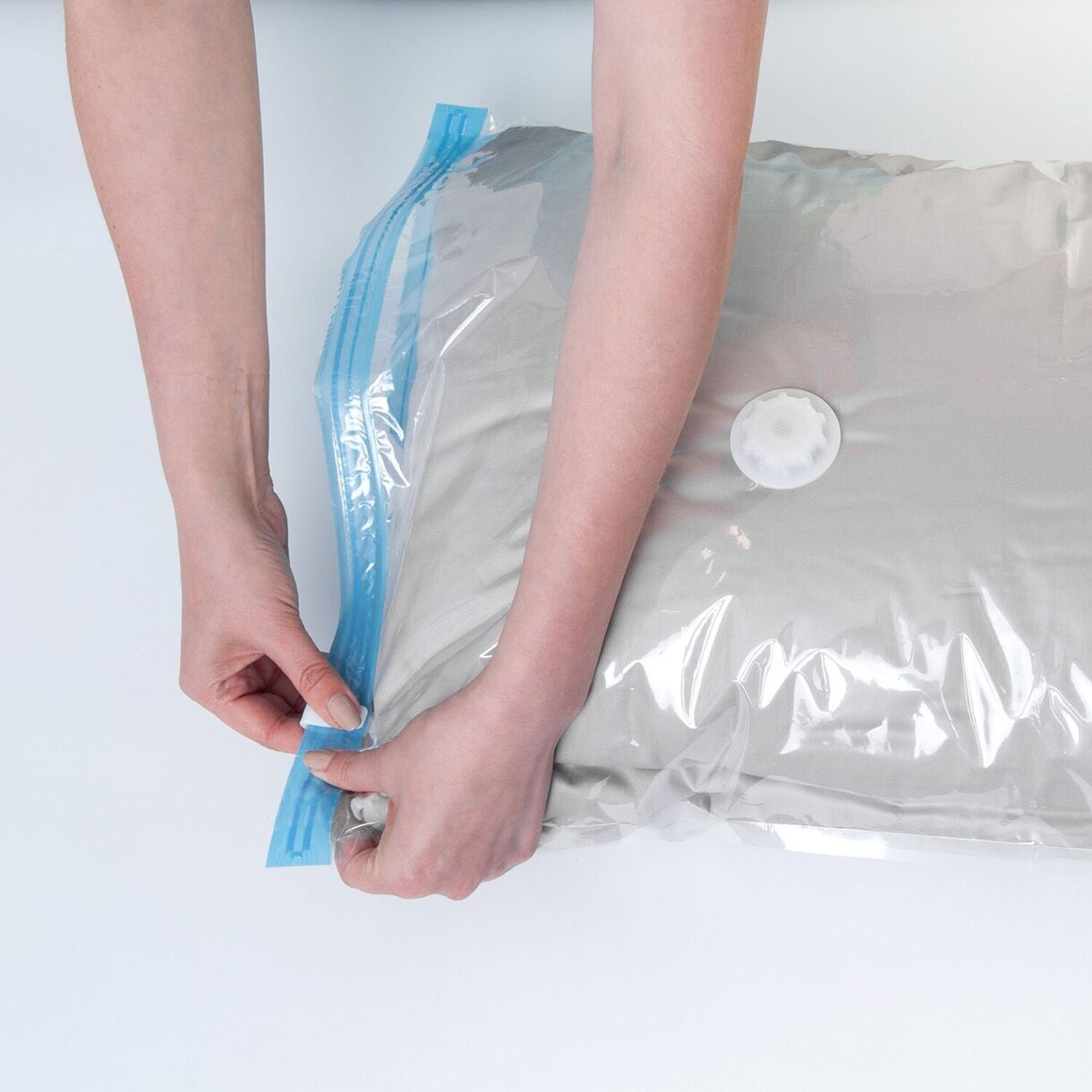 Метод вакуумизации: с помощью пылесоса/насоса. Пакет оснащен специальным клапаном, который открывается перед откачкой воздуха и закрывается после неё.