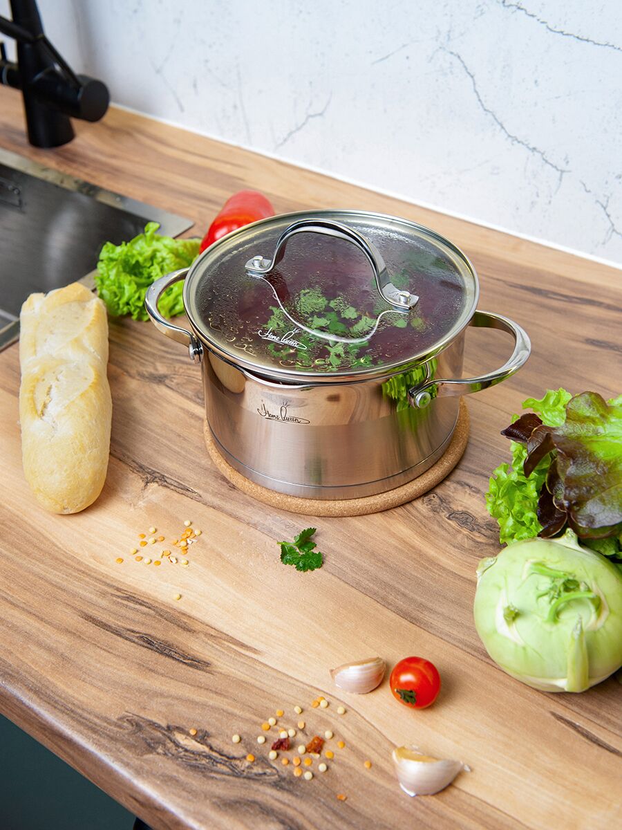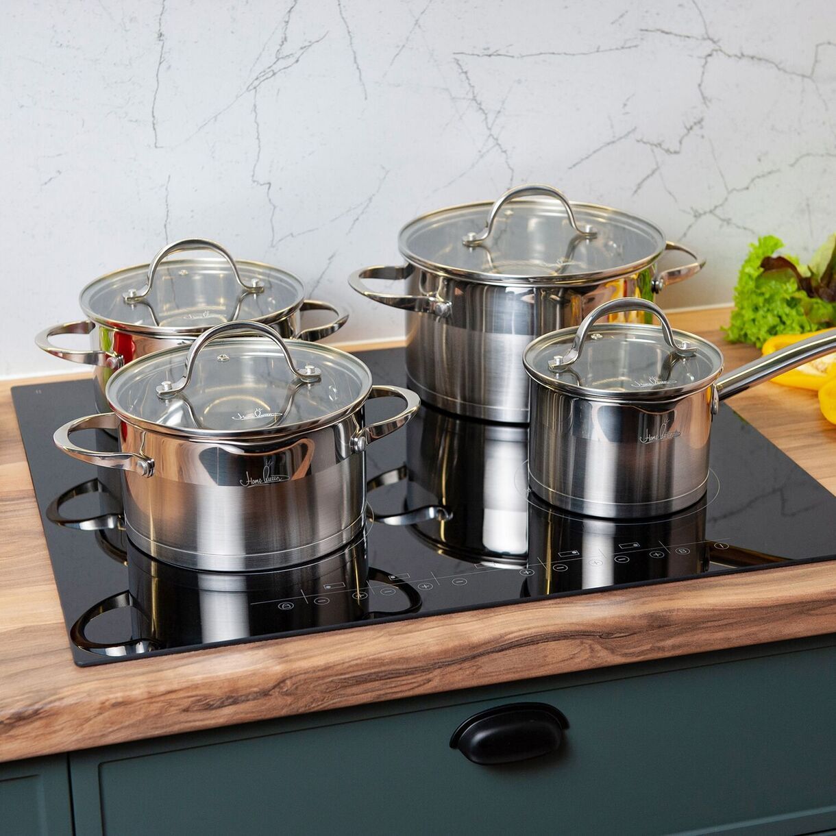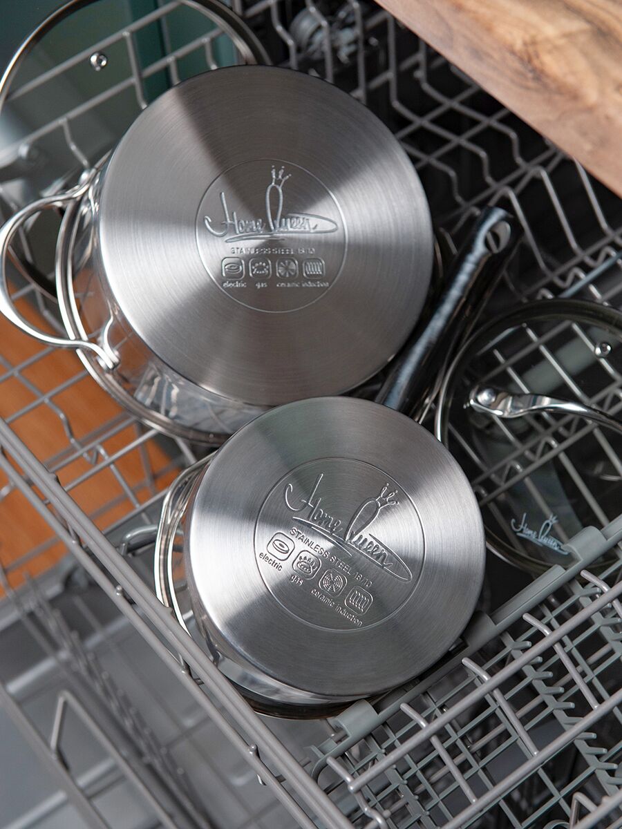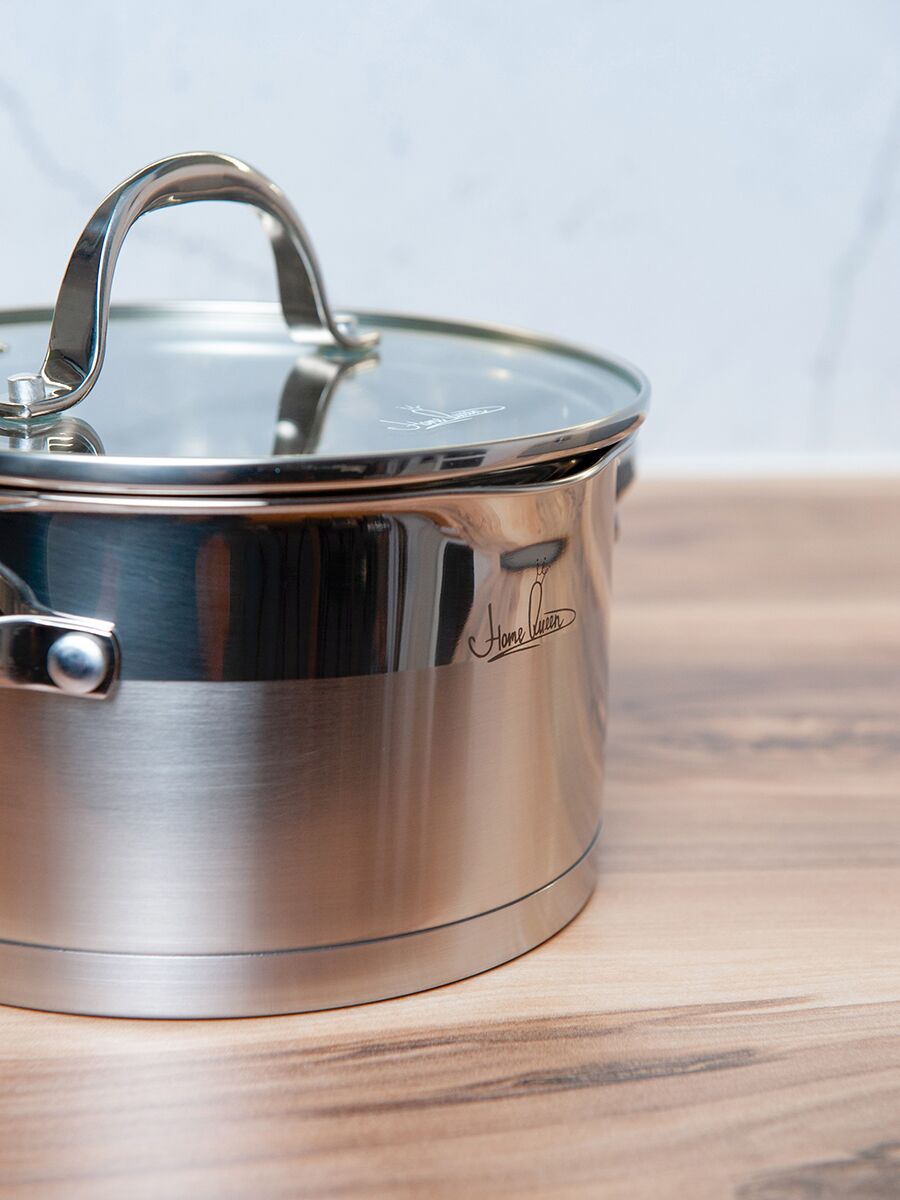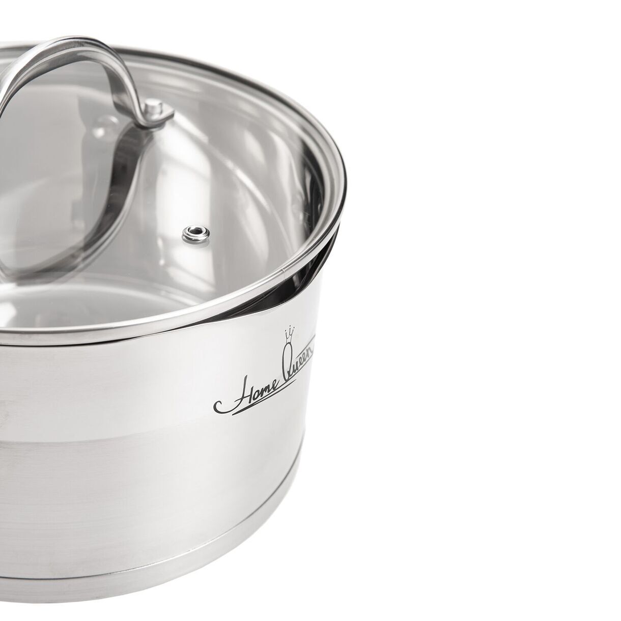 Материал изделия: нержавеющая сталь 18/10 (AISI 304). Ручка - нержавеющая сталь AISI 201, крепления ручки - алюминий. Крышка: закаленное стекло и нержавеющая сталь AISI 201. Четырехслойное теплораспределительное дно толщиной 3,5 мм. Толщина стенок 0,5 мм. Подходит для всех видов плит, включая индукцию. Размер: D 18 см, общий объем (объем кастрюли до краев) - 2,5 л, полезный объем (объем кастрюли, рекомендованный для кофортного использования) - 2,3 л, вес 1210 г.