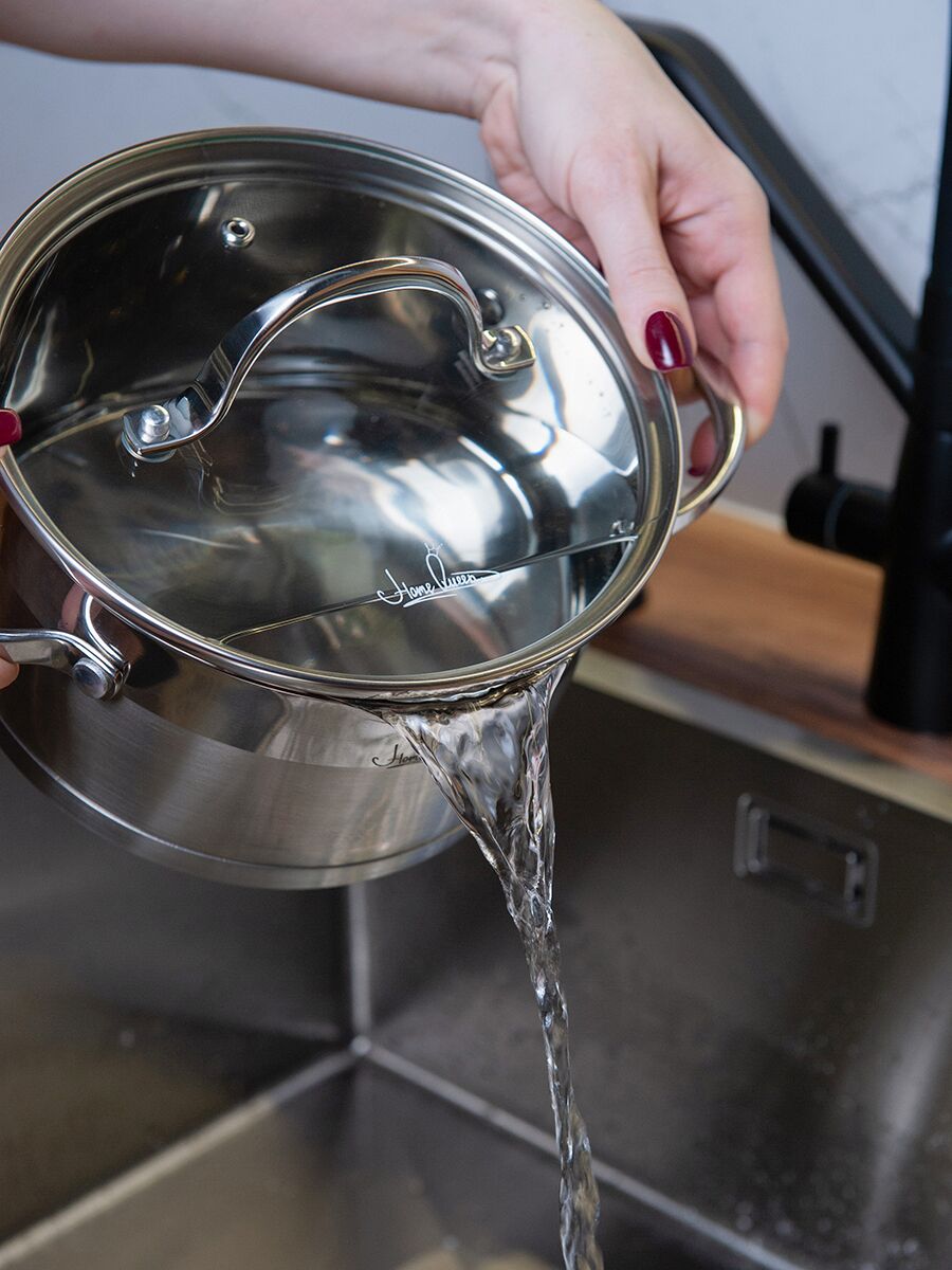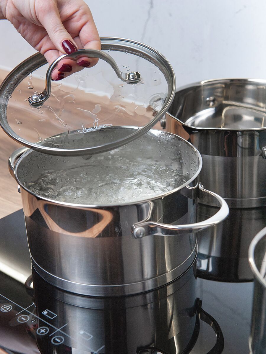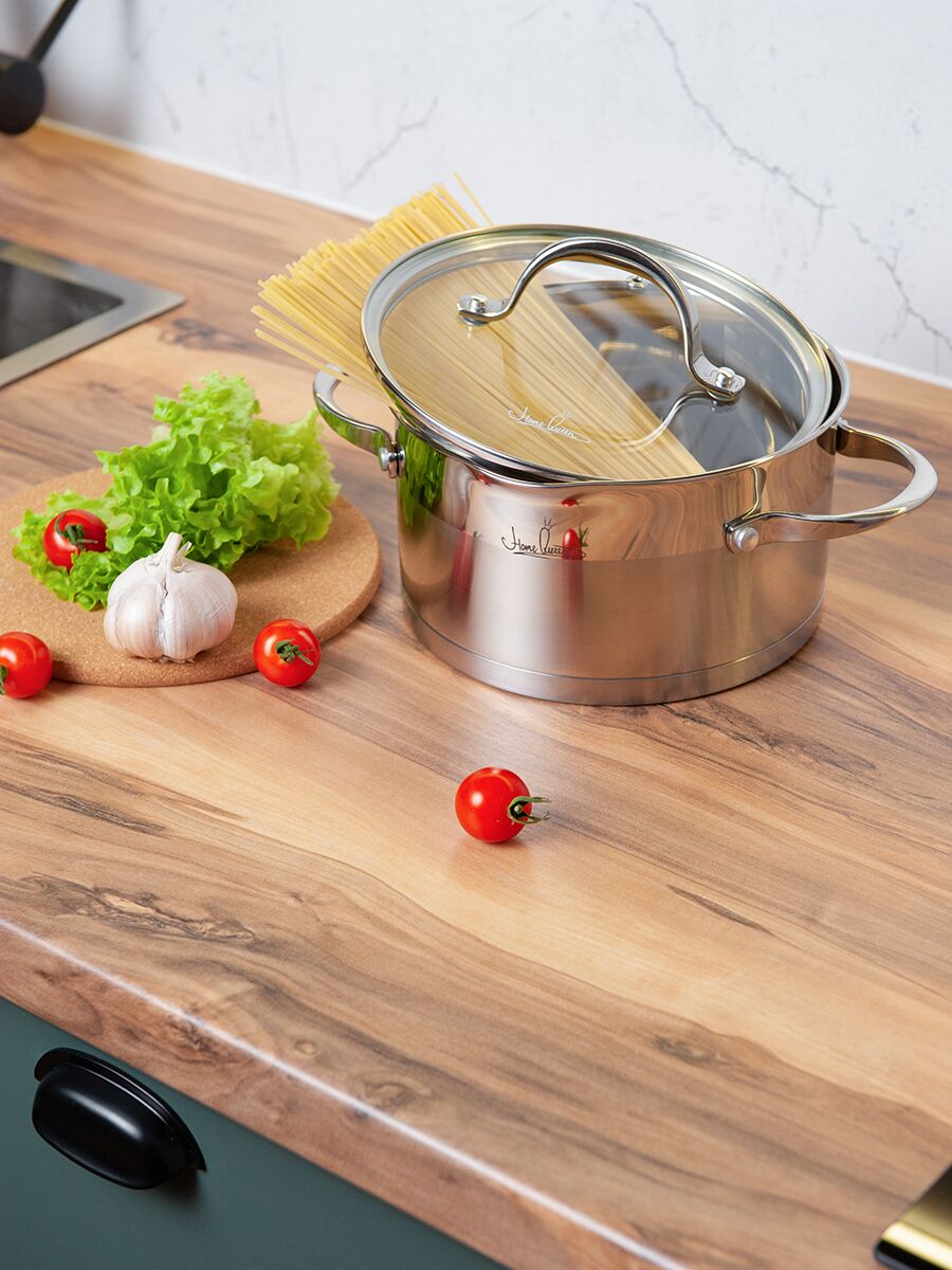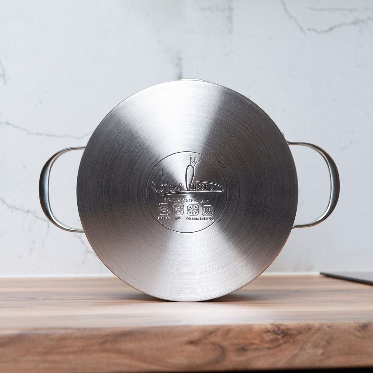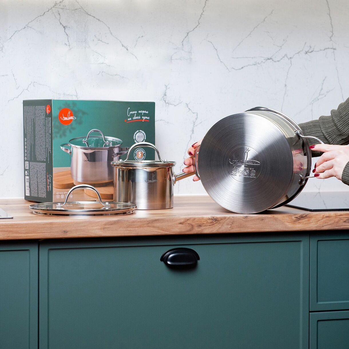 Материал изделия: нержавеющая сталь 18/10 (AISI 304). Ручка - нержавеющая сталь AISI 201, крепления ручки - алюминий. Крышка: закаленное стекло и нержавеющая сталь AISI 201. Четырехслойное теплораспределительное дно толщиной 3,5 мм. Толщина стенок 0,5 мм. Подходит для всех видов плит, включая индукцию. Размер: D 18 см, общий объем (объем кастрюли до краев) - 2,5 л, полезный объем (объем кастрюли, рекомендованный для кофортного использования) - 2,3 л, вес 1210 г.