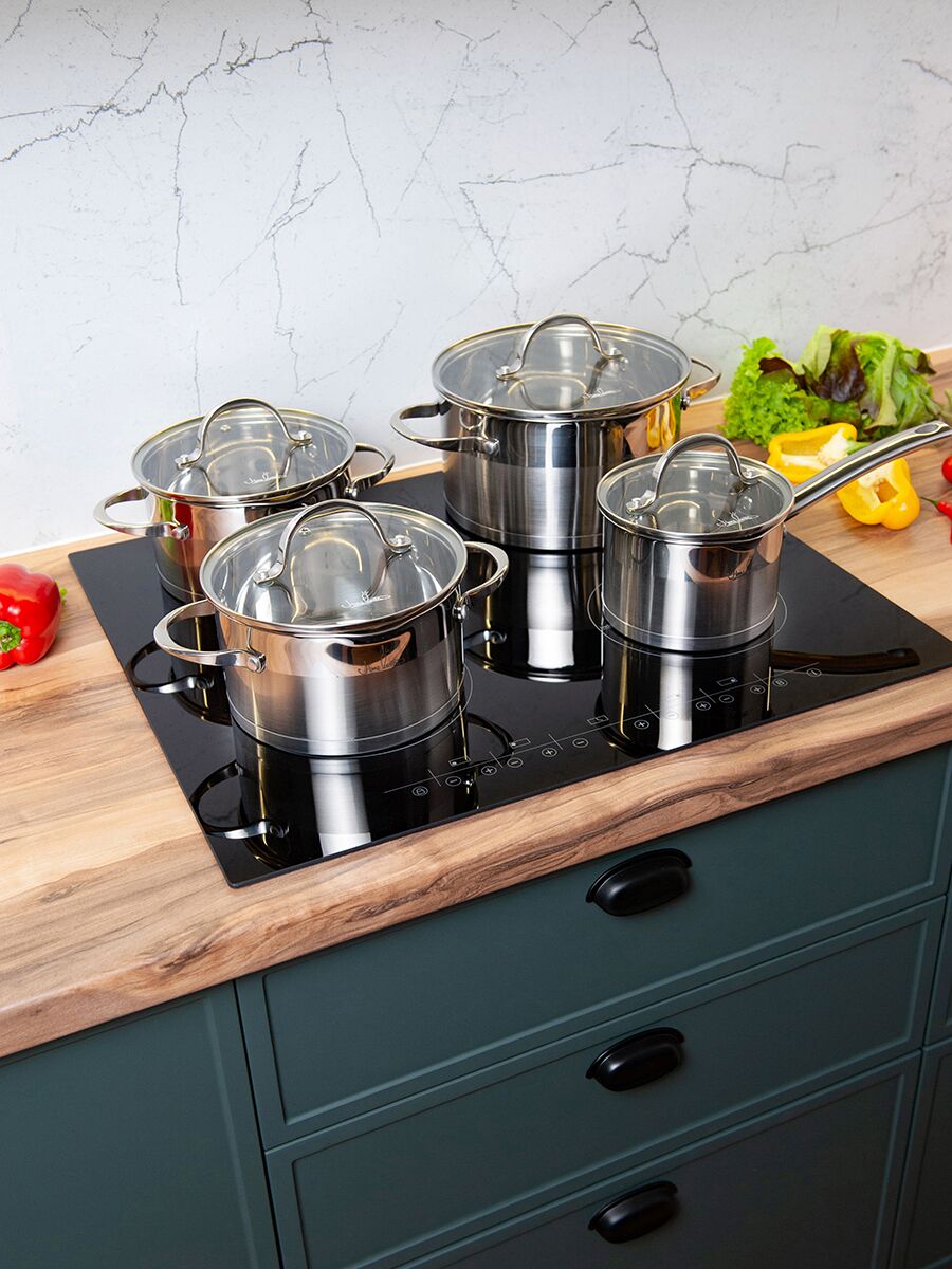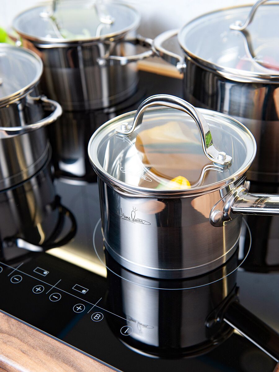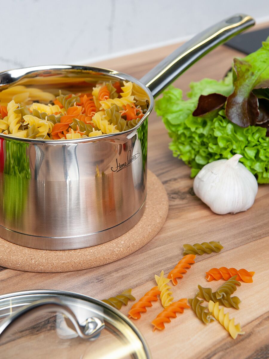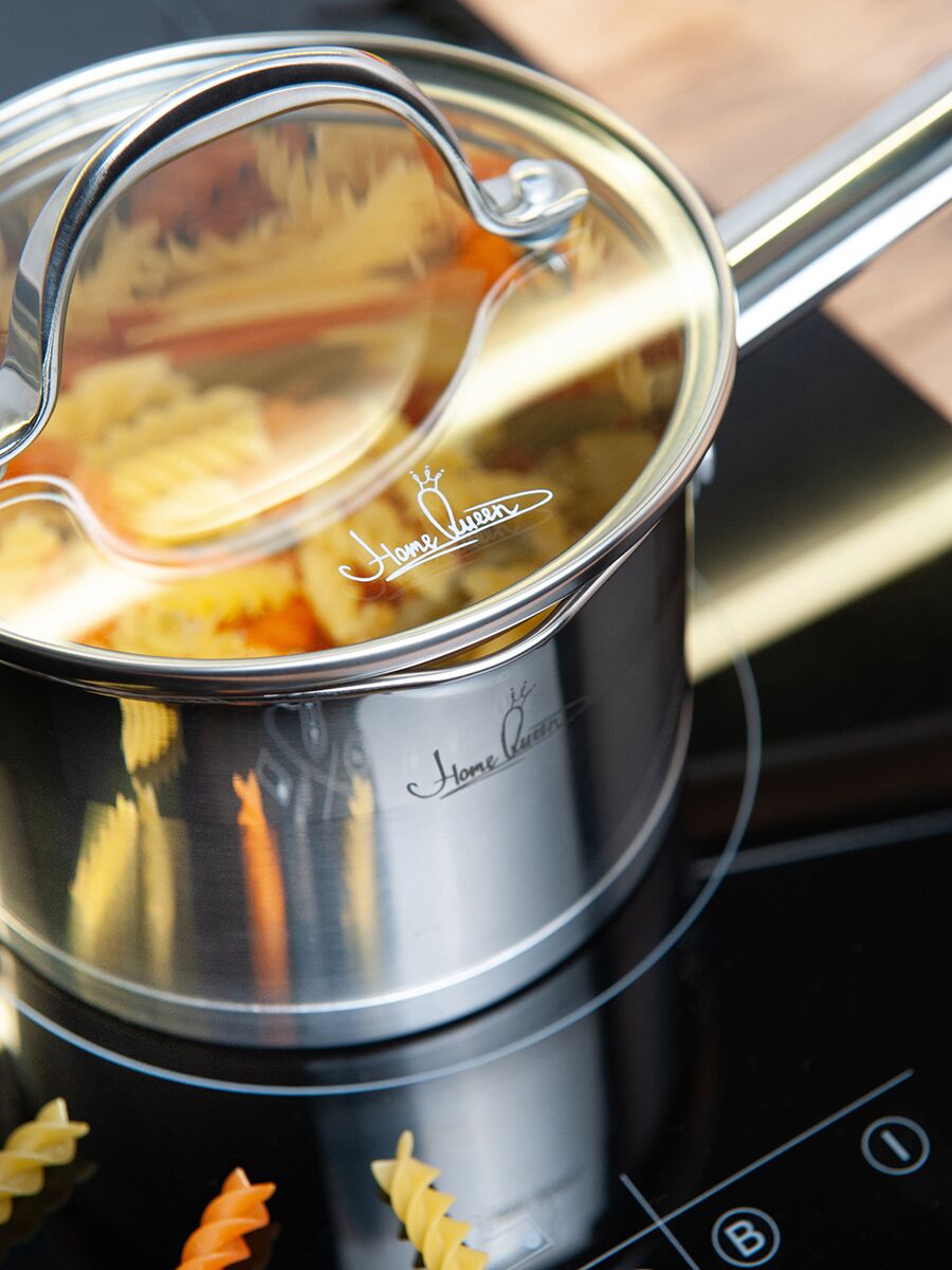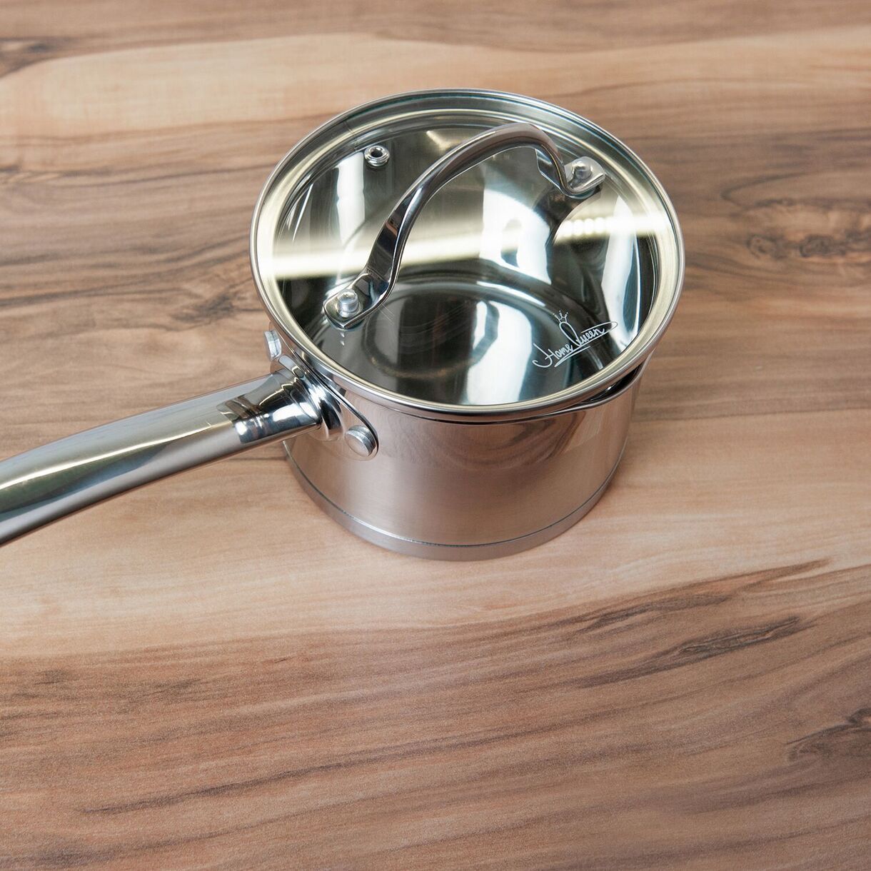 Материал изделия: нержавеющая сталь 18/10 (AISI 304), ручка - нержавеющая сталь AISI 201, крепления ручки - алюминий. Крышка: закаленное стекло и нержавеющая сталь AISI 201. Четырехслойное теплораспределительное дно толщиной 3,5 мм. Толщина стенок 0,5 мм. Подходит для всех видов плит, включая индукцию. Размер: D 14 см, общий объем (объем ковша до краев) - 1,4 л, полезный объем (объем ковша, рекомендованный для комфортного использования) - 1,3 л, вес 800 г.