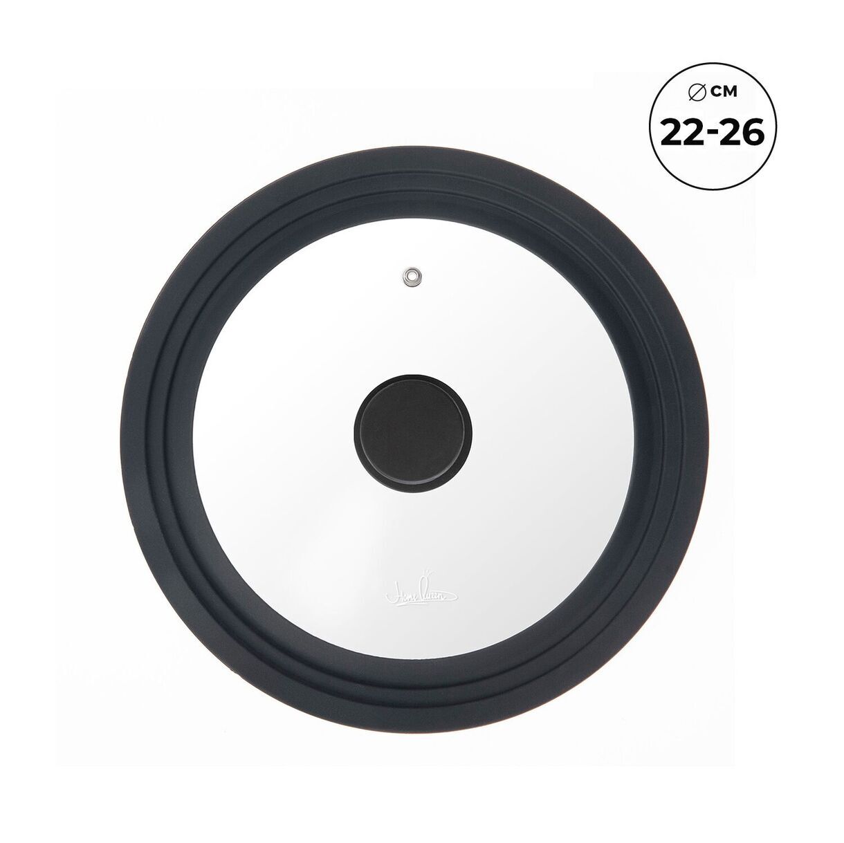 Состав: термостойкое стекло, силикон, полиамид, нержавеющая сталь. Размер: диаметр 27,8 см, высота 5,7 см. Подходит для трех размеров посуды: 22, 24, 26 см. Вес без упаковки: 536 г +/- 10 г, вес с упаковкой 560 +/- 10 г