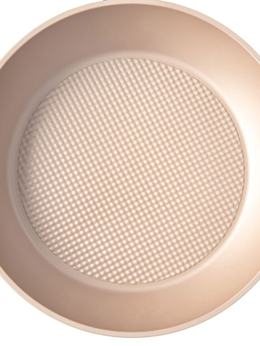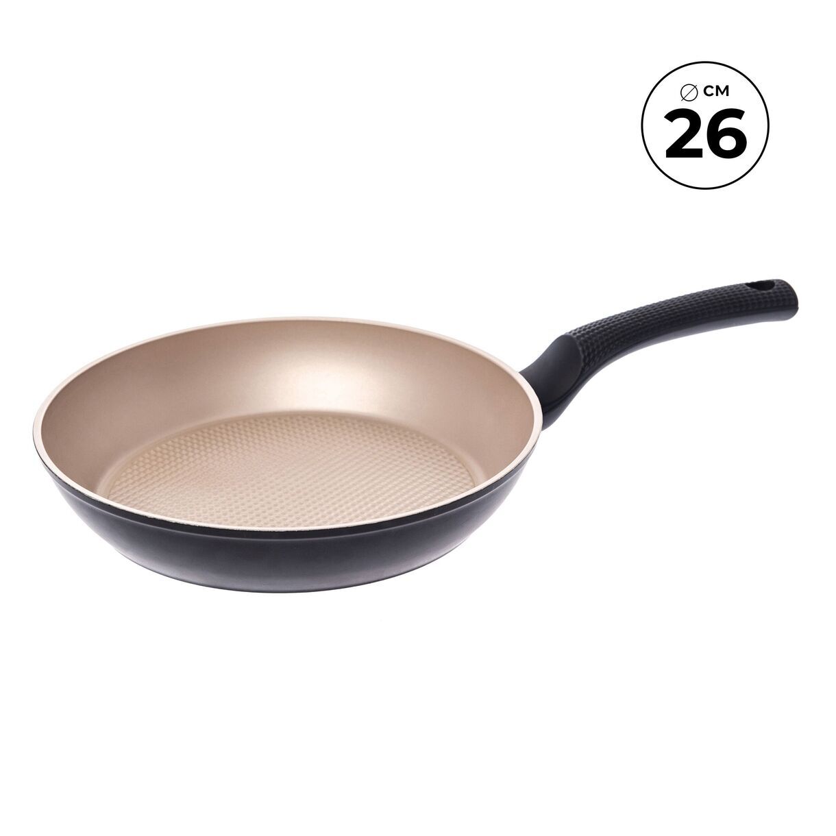 Материал изделия: кованый алюминий с антипригарным покрытием Pfluon. Поверхность с эффектом гриль. Ручка - бакелит с покрытием soft touch и удобным отверстием для размещения на крючке. Индукция. Толщина стенок 2,5 мм, дна - 2,8 мм. Размер: D 26 см, вес 730 г+/- 15 г. Количество слоев покрытия - 2 слоя. Цвет: черный, бежево-розовый.