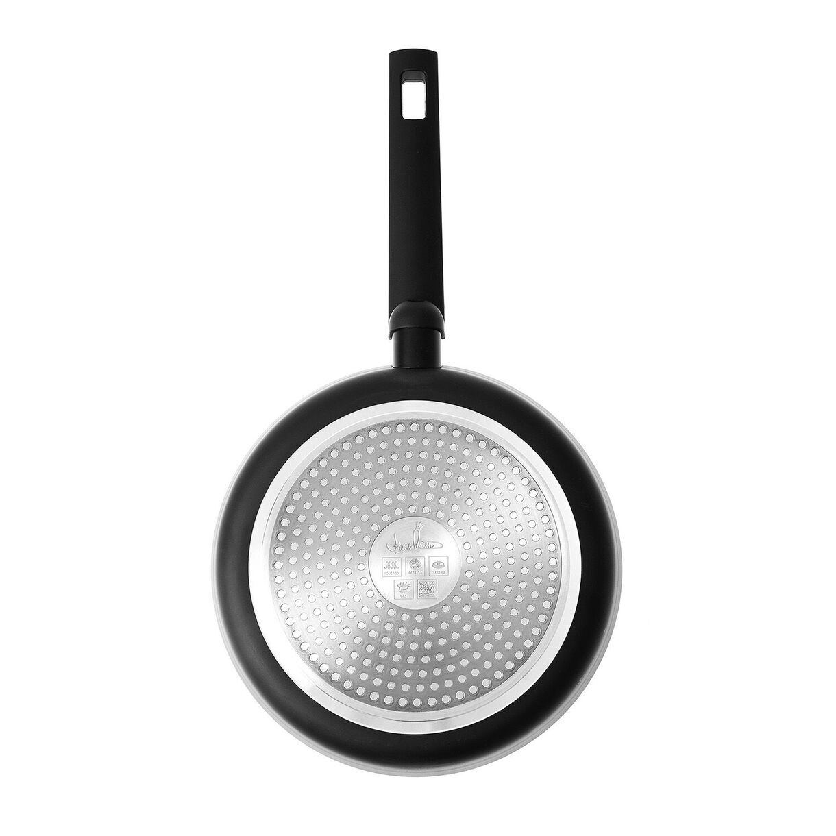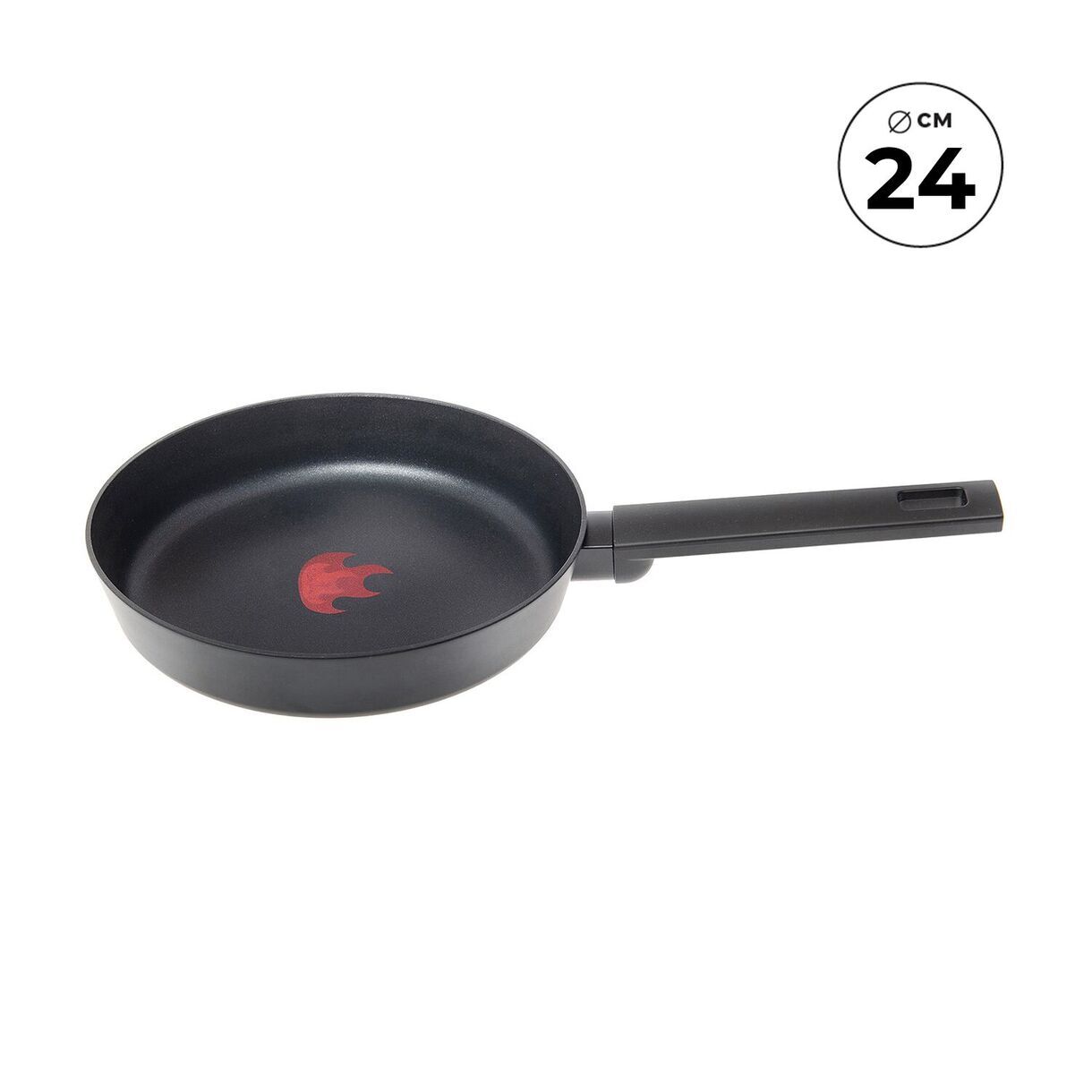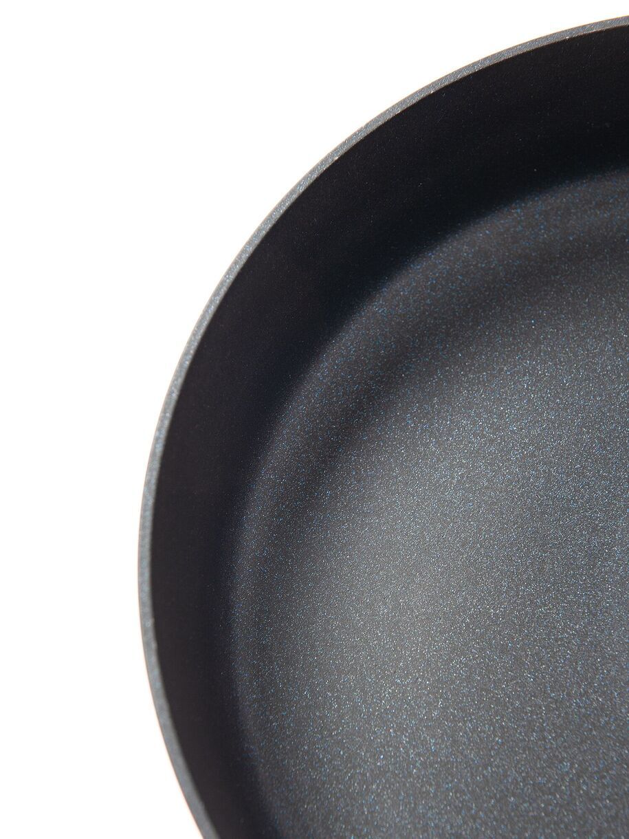 Материал изделия: кованый алюминий с антипригарным покрытием Pfluon. Ручка - бакелит с покрытием soft touch и удобным отверстием для подвешивания. Индикатор нагрева RED HOT. Индукция. Размер: D 24см, диаметр дна 21,6 см, толщина дна 3,5 мм, толщина стенок 3 мм, высота бортов 4,9см, вес 740 г +/- 15 г, длина ручки 19.8 см. Количество слоев покрытия - 4 слоя. Цвет: черный