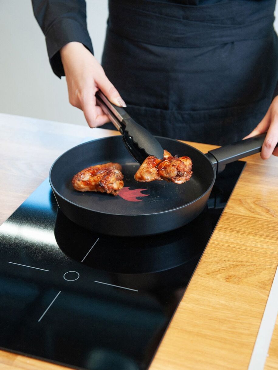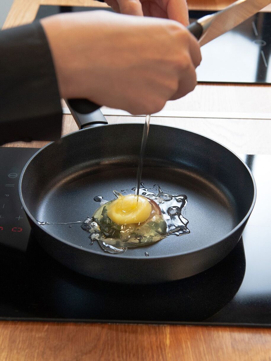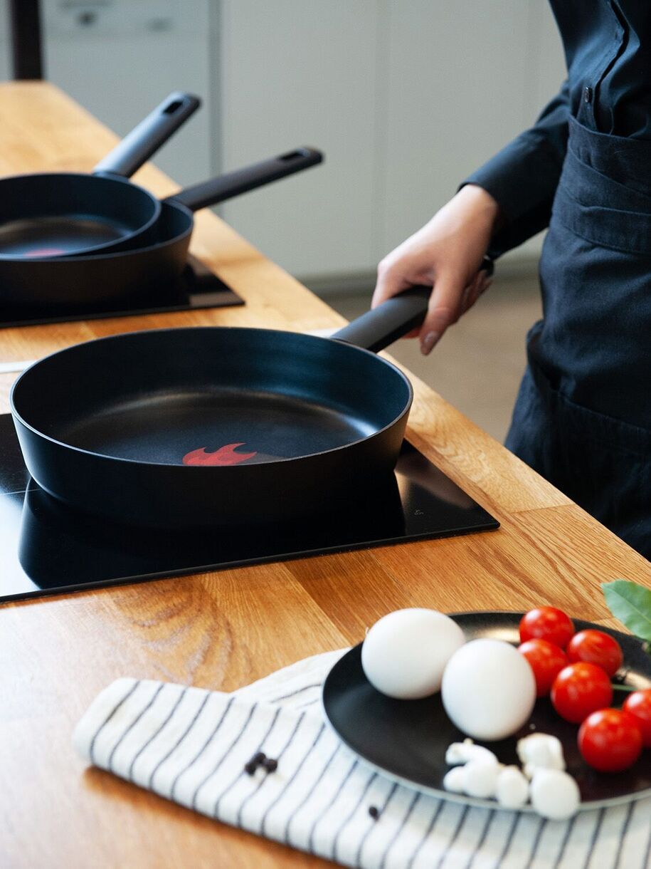 Материал изделия: кованый алюминий с антипригарным покрытием Pfluon. Ручка - бакелит с покрытием soft touch и удобным отверстием для подвешивания. Индикатор нагрева RED HOT. Индукция. Размер: D 24см, диаметр дна 21,6 см, толщина дна 3,5 мм, толщина стенок 3 мм, высота бортов 4,9см, вес 740 г +/- 15 г, длина ручки 19.8 см. Количество слоев покрытия - 4 слоя. Цвет: черный
