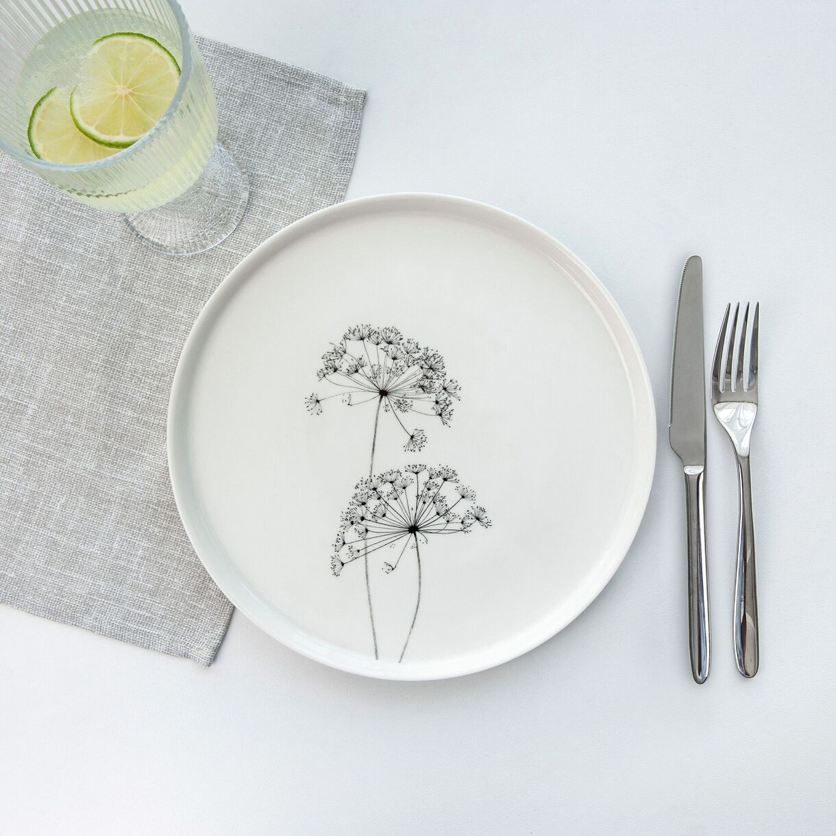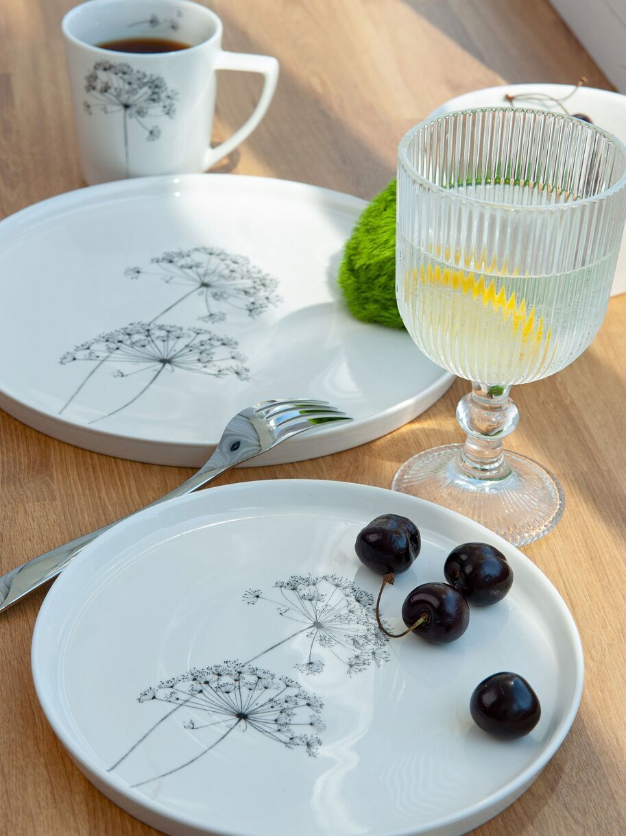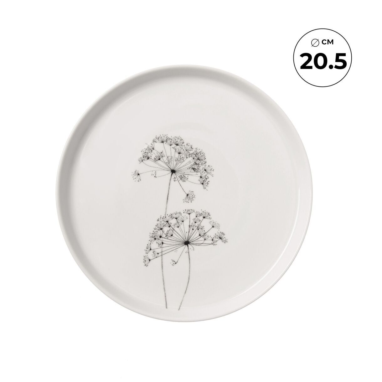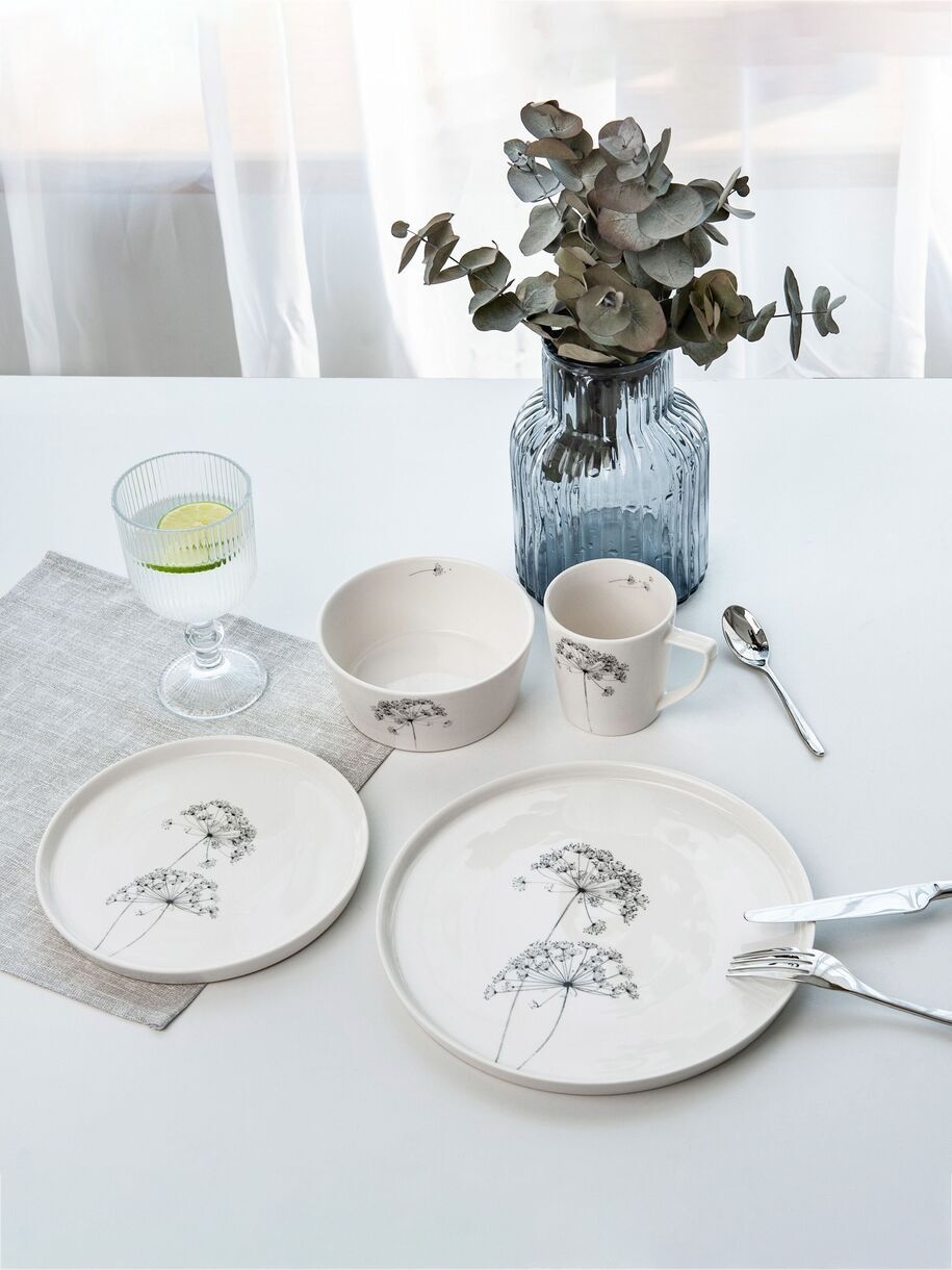 Посуда из костяного фарфора New Bone China. Коллекция «Фенхель» – воплощение современной элегантности. Прямые бортики и лаконичные контуры придают каждому предмету графическую строгость, словно холст, на котором расцветает изысканный узор – монохромные силуэты фенхеля. Каждый изгиб, каждый тончайший стебель прорисован с удивительной деликатностью, создавая игру света и тени, глубины и воздушности. Десертная тарелка из коллекции подойдет для сервировки фруктов, закусок и небольших порций. Перед первым применением рекомендуется промыть. Рекомендуется ручная мойка с помощью щадящих моющих средств. Можно мыть в посудомоечной машине. Можно использовать в микроволновой печи, кроме режима "гриль". Не использовать на открытом огне, в духовках, на варочных панелях любого типа.