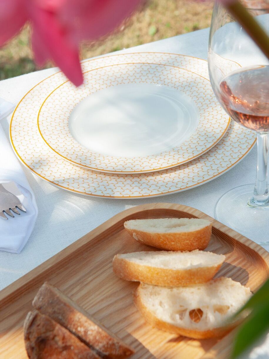 Посуда из костяного фарфора New Bone China. Десертная тарелка "Медовая" - это гармония простоты и изыска. Она станет идеальным дополнением к любому десерту. Ароматный мед, пряная куркума, солнечная календула – такие ассоциации вызывает цвет узора коллекции «Медовая». Этот нежный солнечный узор на белом фоне подчеркнет сладость и аромат вашего десерта, а невесомый дизайн добавит воздушности к каждому кусочку. Также медовый узор будет прекрасно сочетаться с ягодами или шоколадом. Тарелка легко моется и устойчива к высоким температурам. Перед первым применением рекомендуется промыть. Рекомендуется ручная мойка с помощью щадящих моющих средств. Можно мыть в посудомоечной машине. Можно использовать в микроволновой печи, кроме режима "гриль". Не использовать на открытом огне, в духовках, на варочных панелях любого типа.