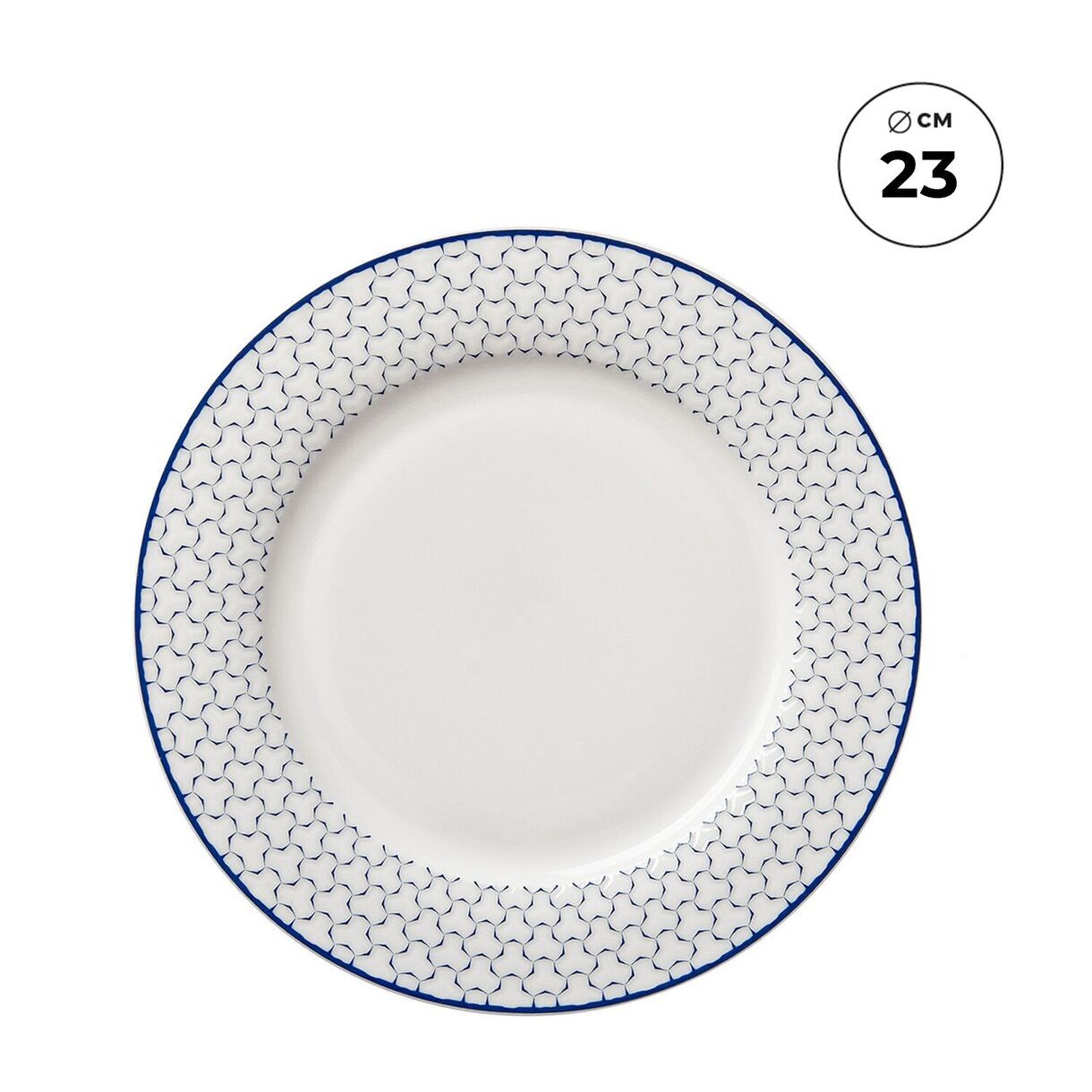 Посуда из костяного фарфора New Bone China. Обеденная тарелка из коллекции "Воздушная" предназначена для сервировки основных блюд. Благородное сочетание белого и синего цветов делают коллекцию элегантной и изысканной. Обеденная тарелка размера 23 см идеальна для сервировки небольших порций. Также ее можно использовать в тандеме с обеденной тарелкой большего диаметра 27 см для создания особой, праздничной атмосферы. Тарелка легко моется и устойчива к высоким температурам. Перед первым применением рекомендуется промыть. Рекомендуется ручная мойка с помощью щадящих моющих средств. Можно мыть в посудомоечной машине. Можно использовать в микроволновой печи, кроме режима "гриль". Не использовать на открытом огне, в духовках, на варочных панелях любого типа.