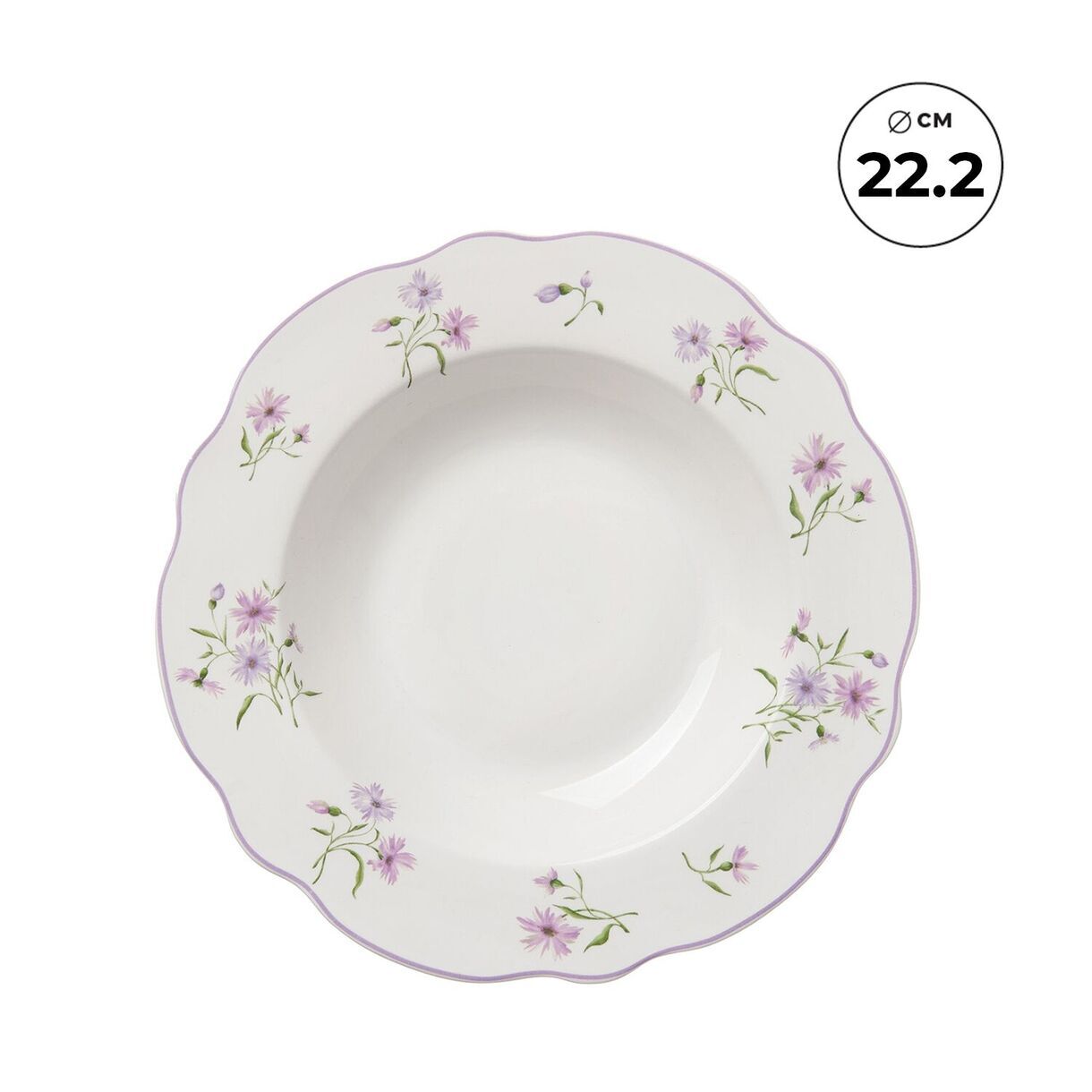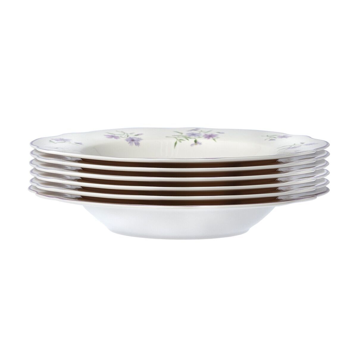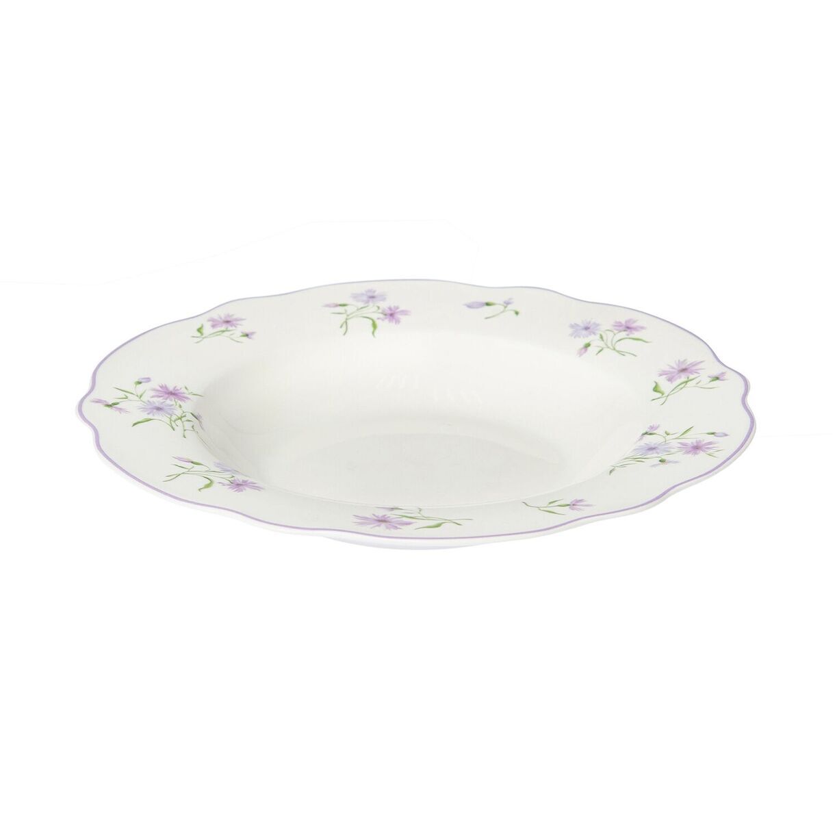 Посуда из костяного фарфора New Bone China. Суповая тарелка коллекции "Летние воспоминания" - это идеальное сочетание функциональности и эстетики. Здесь мы возвращаемся к принту мильфлер – узору из множества цветов. Основной цвет коллекции – цвет нежной пудровой лаванды. Он присутствует на тарелках с принтом в виде аккуратных букетов и повторяется в однотонных тарелках, объединяя разные формы в единый ансамбль. Форма тарелки специально разработана для комфортной подачи и удобного использования. Она идеально подходит для различных видов супов, будь то ароматный крем-суп или пикантный гаспачо. Деликатная цветная каемка обрамляет цветущее пространство тарелки, добавляя еще больше изящества и элегантности, погружая в атмосферу ностальгии и летних воспоминаний. Тарелка легко моется и устойчива к высоким температурам. Отличительными особенностями коллекции являются: легкий вес при высокой износостойкости; специальный трехступенчатый обжиг, делающий предметы максимально прочными и красивыми - качество, которое видно невооруженным глазом.Перед первым применением рекомендуется промыть. Рекомендуется ручная мойка с помощью щадящих моющих средств. Можно мыть в посудомоечной машине. Можно использовать в микроволновой печи, кроме режима "гриль". Не использовать на открытом огне, в духовках, на варочных панелях любого типа.