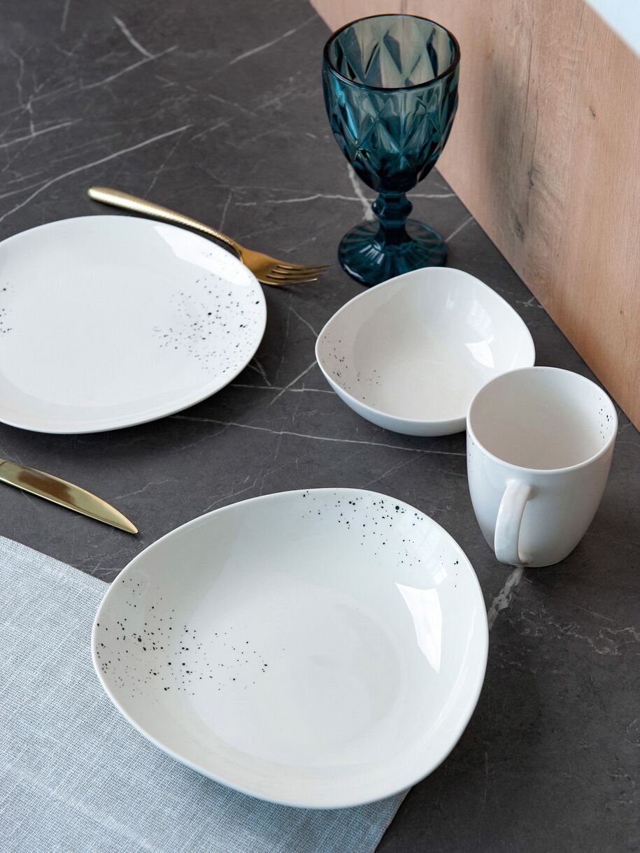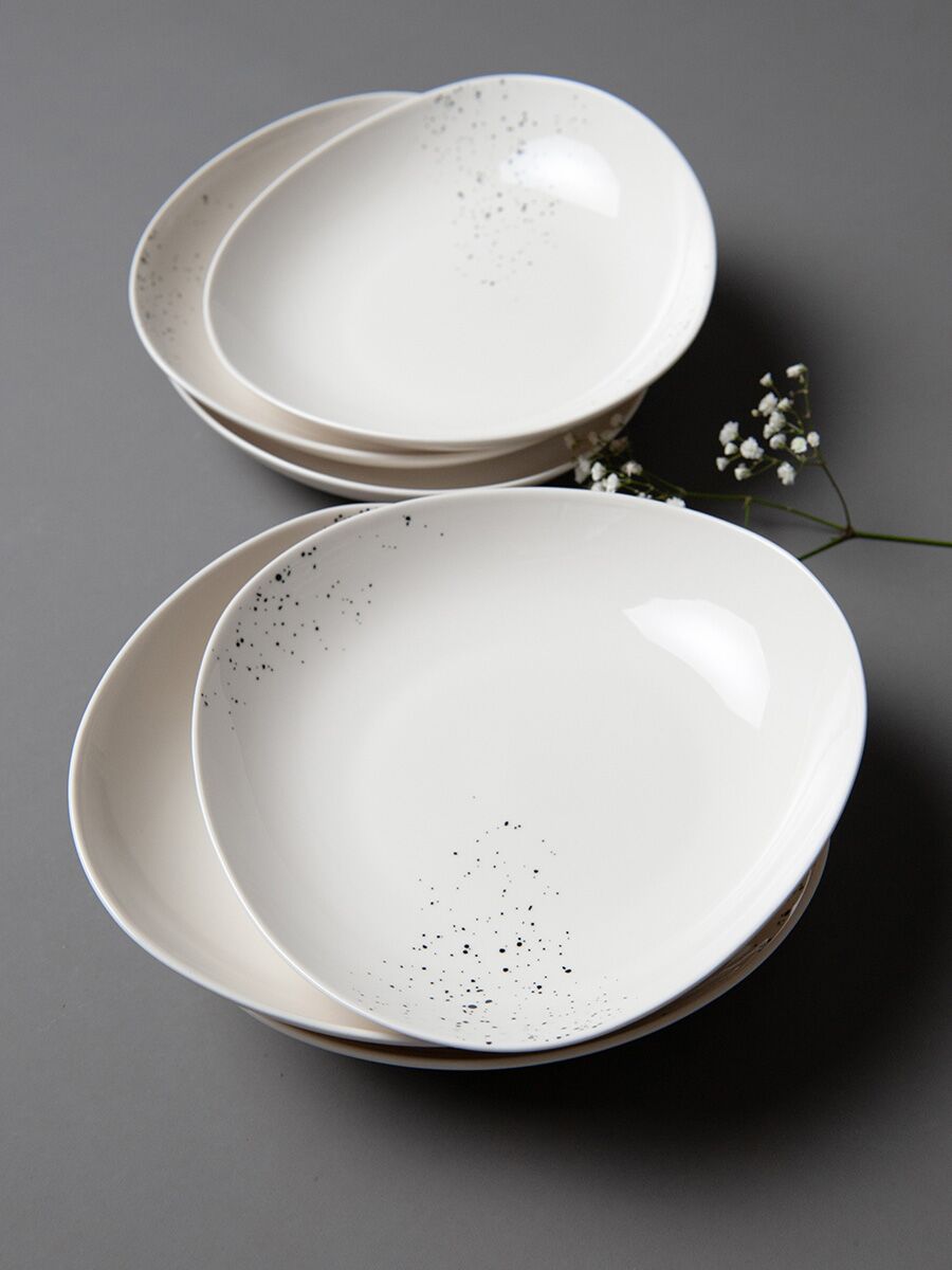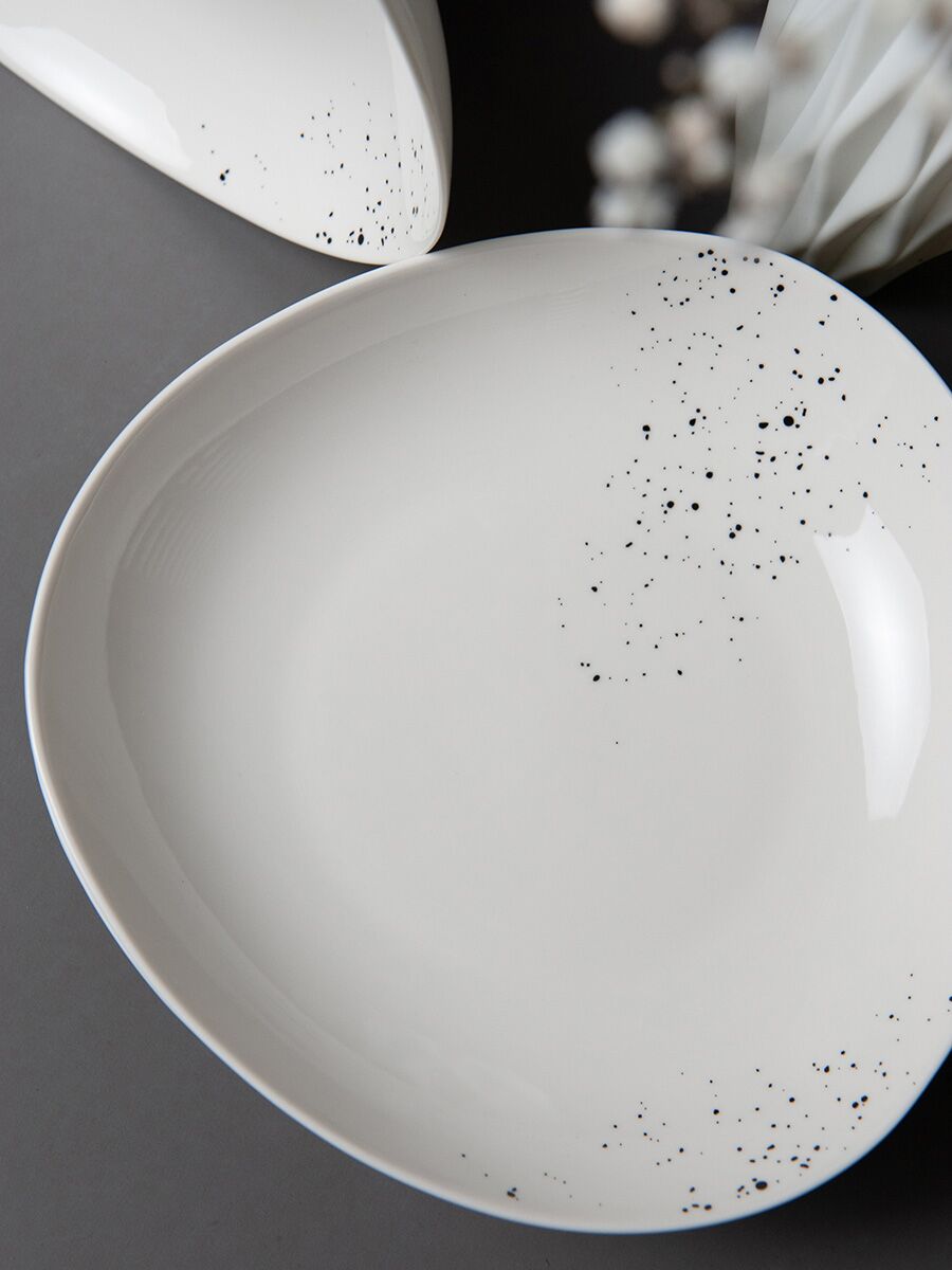 Посуда из костяного фарфора New Bone China. Коллекция «Терра» (от лат. «земля») – это ода земле, воплощенная в белоснежном фарфоре. Форма тарелок, вдохновлённая треугольником Рёло, делает эту коллекцию современной, интересной и актуальной. Сочетание необычной формы и аккуратный декор коллекции отметят те, кто ценит естественную красоту и безупречное качество. Вместительная тарелка-боул "Терра" одинаково хорошо подойдет для ароматного супа, сытного второго блюда, свежего салата или подачи фруктов. Перед первым применением рекомендуется промыть. Рекомендуется ручная мойка с помощью щадящих моющих средств. Можно мыть в посудомоечной машине. Можно использовать в микроволновой печи, кроме режима "гриль". Не использовать на открытом огне, в духовках, на варочных панелях любого типа.