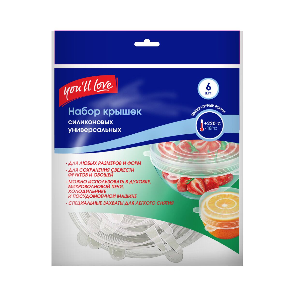 Универсальный аксессуар, позволяющий сохранить продукты свежими, препятствует проливанию жидкостей. Универсальные силиконовые крышки прекрасно растягиваются и подходят практически под любой диаметр посуды и форму: круг, прямоугольник, квадрат, овал.